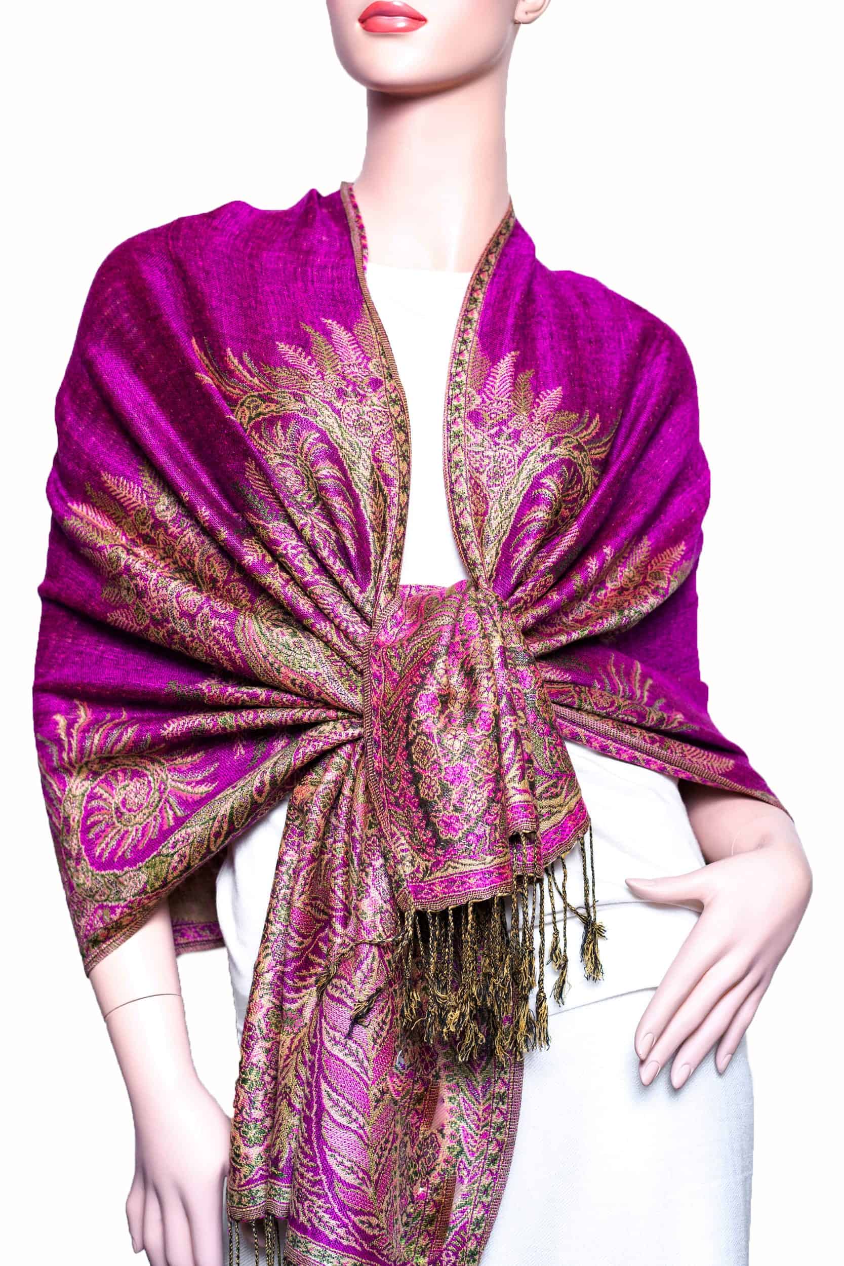 Phoenix Tail Thicker Reversible Paisley Pashmina Fuscia
